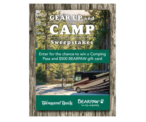 Thousand Trails Gear Up And Camp 2023 - Win A Camping Pass And A $500 Bearpaw Gift Card - Thousand Trails