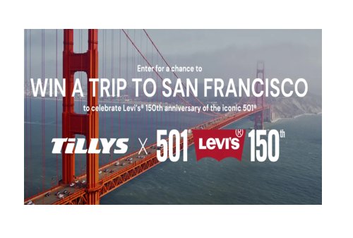 Tillys Levi’s 501 150 Anniversary Event Sweepstakes - Win A $2,500 Trip To San Francisco + $1,000 Levi's Gift Card - Tillys