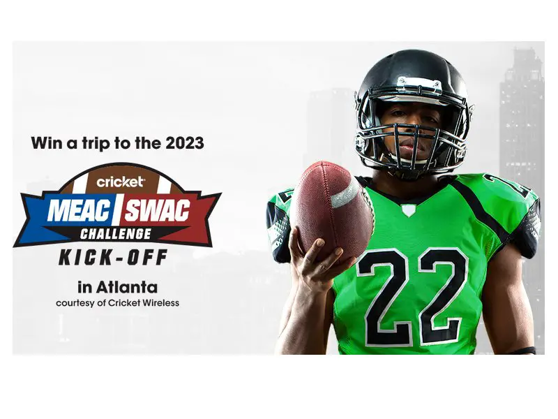 1 Winner: A Trip for Two to the 2023 MEAC/SWAC Challenge Kick-Off Flyaway Sweepstakes in Atlanta, GA with Airfare, Two Nights Hotel Accommodation with Ground Transportation, Tickets to the Events, $500 Prepaid Gift Card and A Smartphone with 1-Year Unlimited Extra Plan from Cricket WirelessEntry Form