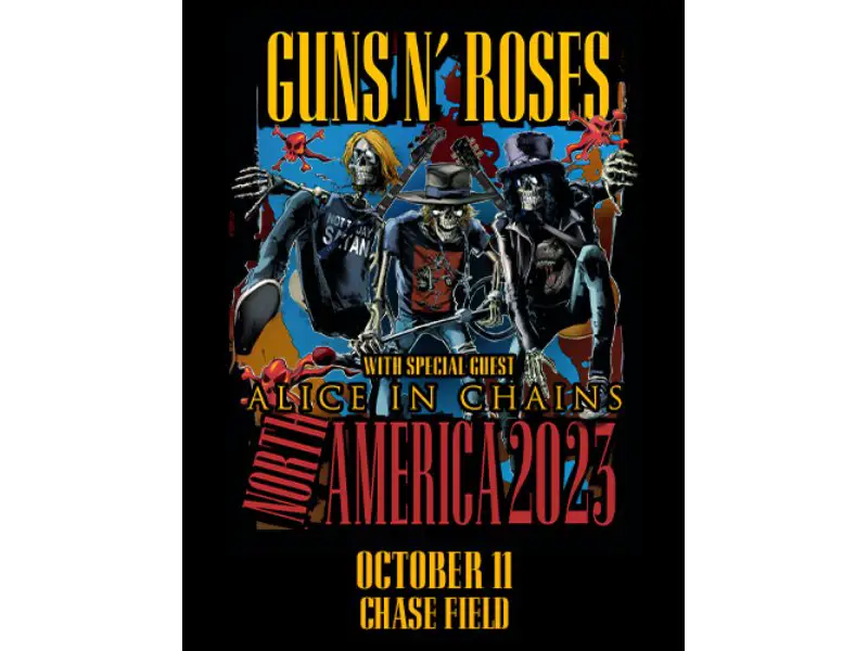 1 Winner: A Trip for Two to Watch Guns N' Roses Live in Concert in Phoenix, Arizona on October 11, 2023 with Pre-Show Access to Paradise City Lounge, VIP Access and Tickets, Air Travel Vouchers, Two Nights Hotel Accommodation and $200 Gift Card for Other Transportation CostsEntry Form