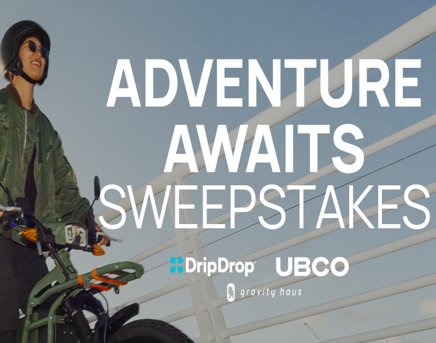 One lucky winner will be presented with a prize pack worth $9,300. The prize pack includes a free two-night stay at a Gravity Haus location worth $900, a $6,999 worth of UBCO 2×2 Special Edition Electric Bike, and a year’s supply of DripDrop products.