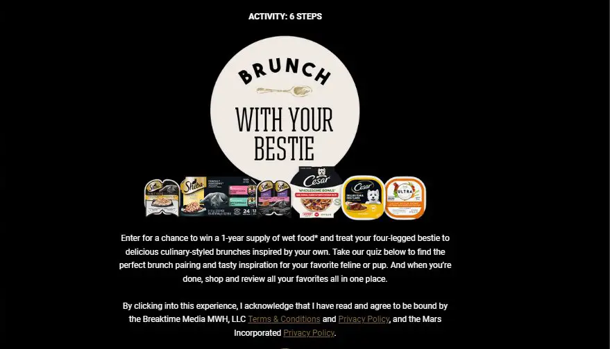 Mars Brunch With Your Bestie Sweepstakes - Win Free Pet Food Supplies For A Year - Mars Petcare US, Inc.