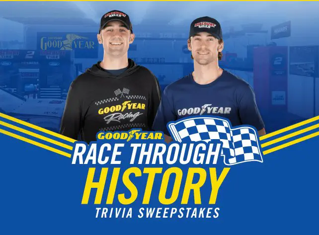 The Goodyear’s Race Through History Trivia Sweepstakes is open to legal residents of the United States who are at least 21 years of age at the time of entry.