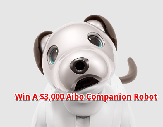 Up for grabs in this giveaway is an Aibo Companion Robot.
