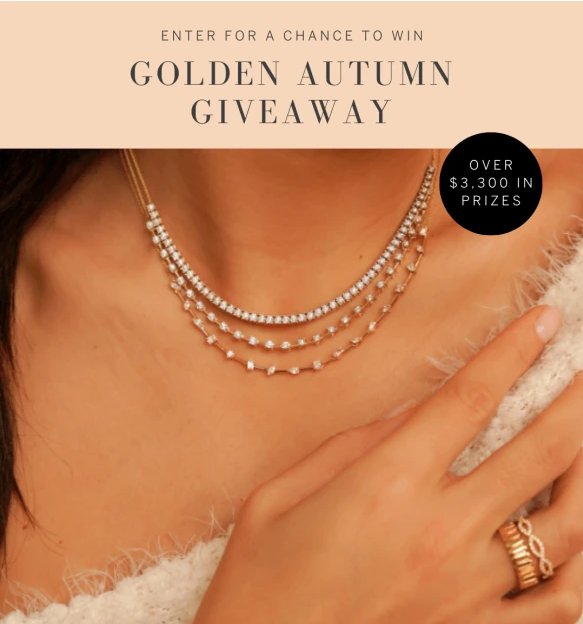 Enter the Golden Autunm Giveaway for a chance to win a prize bundle worth $3,300. One lucky grand prize winner will win a prize bundle that includes a $500 Gift Card from Raen, $500 Gift Card courtesy of Dana Rebecca, $400 Gift Card from White+Warren, a book bundle, and more.