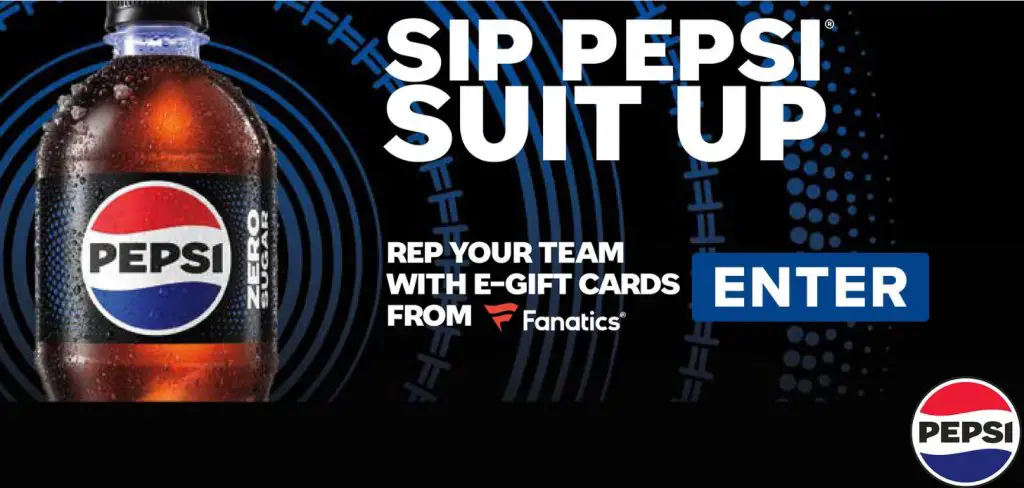 Rep your team for a chance to win free Fanatics gift card! 121 lucky winners including one grand prize winner will be selected in the Pepsi Zero Sugar Football Sweepstakes.
