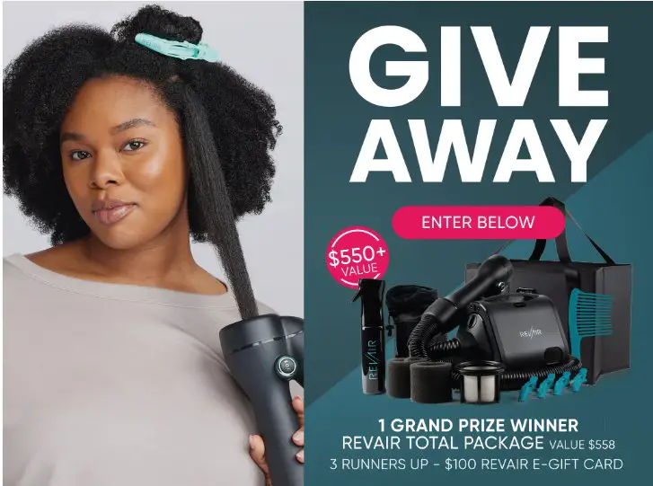 One lucky grand prize winner will receive RevAir Reverse Air Hair Dryer and accessories, while three runners-up will each win a free $100 eGift Card.