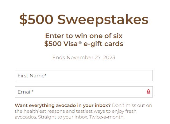 Hass Avocado Board Avocado and Pumpkin Sweepstakes - $500 VISA Gift Card, 6 Winners - Hass Avocado Board