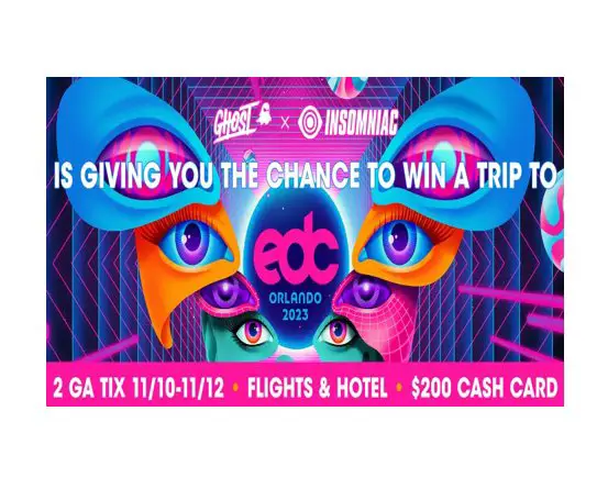 Enter the GHOST Energy x Orlando Festival Sweepstakes for a chance to win a free trip to EDC Orlando 2023 including flights and hotel accommodation.
