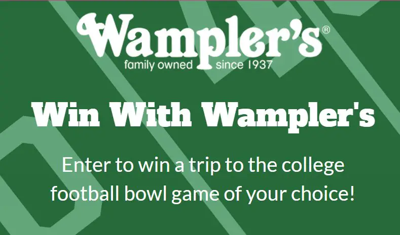 Love college football? Here is a chance to win free tickets to the college football game of your choice. Enter the Win With Wampler’s Sweepstakes, and you could win trip to a college football bowl game of their choosing, free tickets, $300 spending money, hotel accommodation for two.