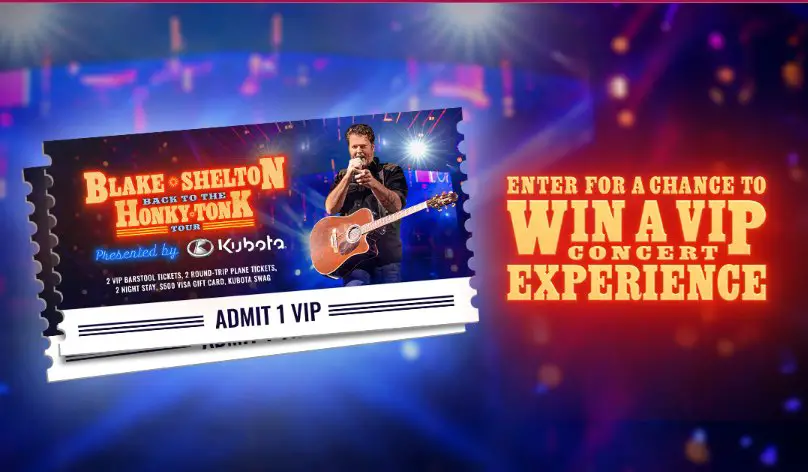 Kubota Blake Shelton VIP Concert Sweepstakes - Win A Trip To A Blake Shelton Concert (5 Winners) - Kubota
