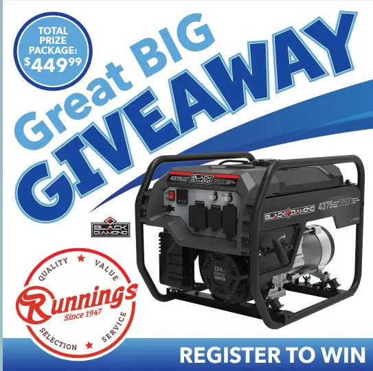 Solve your power backup problem this holiday season by participating in the Runnings Great Big Giveaway for a chance to score a Black Diamond Generator.