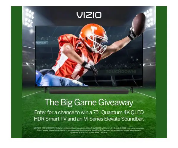 Vizio Big Game Giveaway Sweepstakes - Win A 75" Smart TV with Soundbar (3 Winners) - Vizio