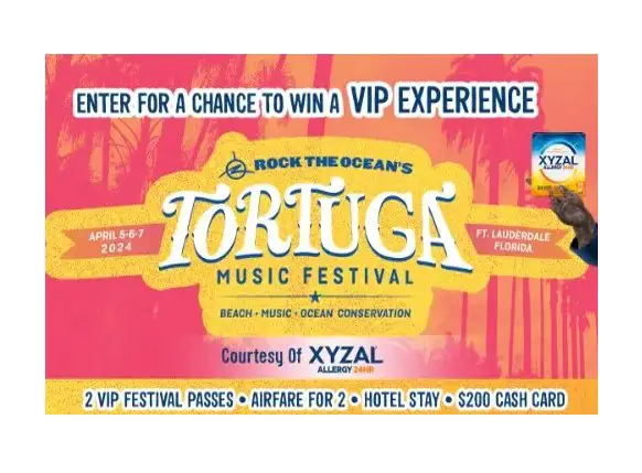 Here is a chance to win a VIP experience to the Tortuga Music Festival At Ft. Lauderdale Beach! The lucky winner will have the chance to experience solid performances from popular artists like Lainey Wilson, Jason Aldean, and Old Dominion. For a chance to win a free VIP ticket, simply enter the Xyzal Tortuga Sweepstakes.