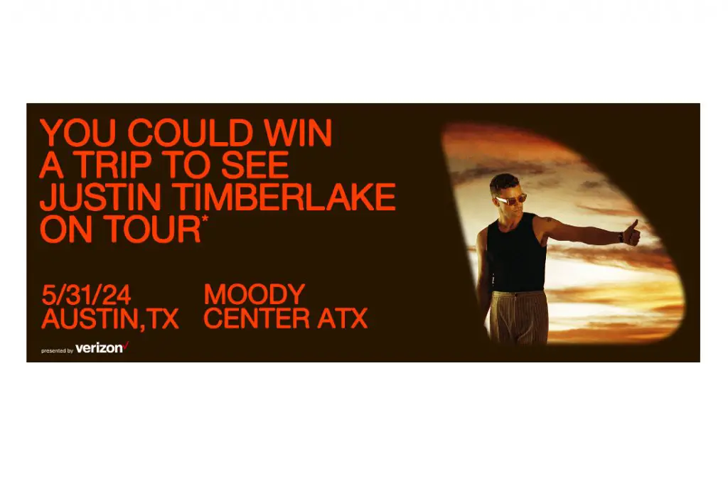 Enter now for a chance to win a trip for two to Austin, Texas for Justin Timberlake's concert on May 31, 2024! The trip comes with airfare, two nights hotel accommodation, $200 for ground transportation and event tickets!