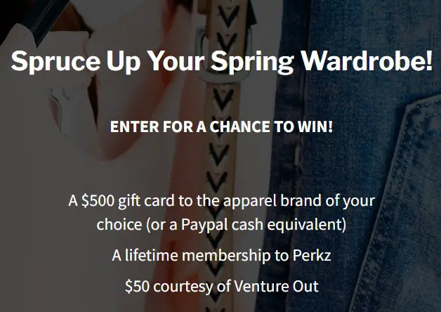 Are you thinking of upgrading your wardrobe? Enter the Spruce Up Your Spring Wardrobe Sweepstakes for a shot at winning free $500 gift card for the apparel brand of your choice and a lifetime Perkz Membership!