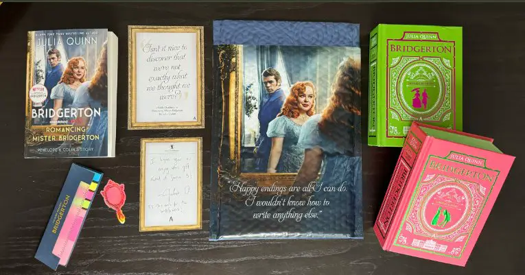 The winners will also be rewarded with a set of Bridgerton Post-Its, an art print, a sticker, and a postcard from Bridgerton author Julia Quinn.