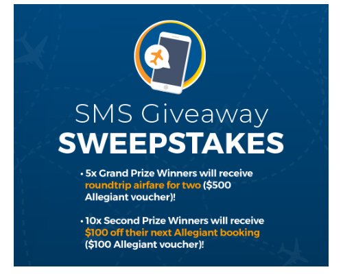 Allegiant Air SMS Giveaway Sweepstakes - Win An Air Travel Voucher Up To $500 - Allegiant Air