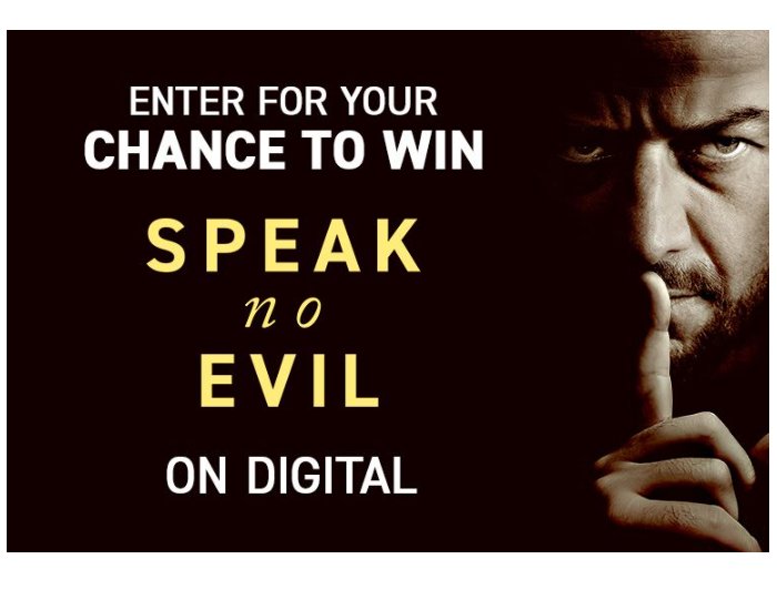 Enter now and be one of the five instant winners of a digital gift code for "Speak No Evil" starring James McAvoy! Enjoy a masterful horror movie with friends at home with this fun prize just in time for Halloween!
