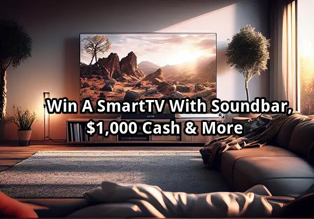 2 Winners: One SmartTV with Soundbar and Subwoofer, a Cornhole Game, Tumbler and $1,000Other Prizes