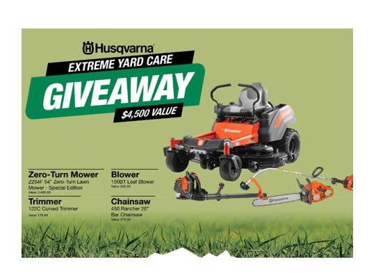 Up for grabs is a $4,500 Husqvarna yard care prize package.