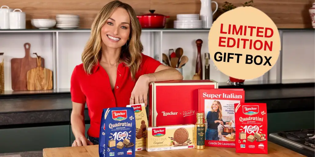 100 lucky winners will each score a Loacker X Giadzy 100Y Giftbox. Each box contains a Giadzy Gold-Wrapped Extra Virgin Olive Oil, assorted Loacker Wafer Cookies, and a signed copy of the Super-Italian cookbook by celebrity Chef Giada De Laurentiis.