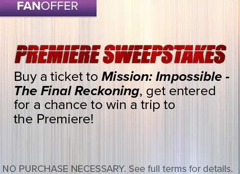 Fandango’s Mission Monday Premiere Sweepstakes – Win A Trip For 2 To The Mission Impossible – The Final Reckoning Premiere - Fandango