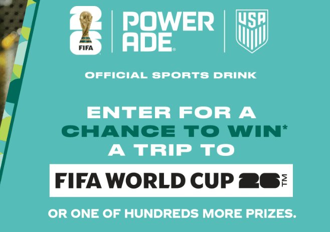 Enter the Powerade Spin To Win Instant Win Game & Sweepstakes for a chance to win a trip for 2 to a FIFA World Cup game.