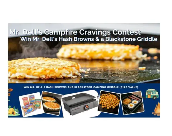 Enter the sweepstakes for a chance to win a Blackstone camping stove and some Mr. Dell’s hash browns.