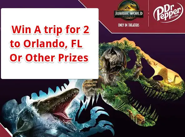 20 winners will each receive 2 Jurassic World Rebirth movie passes, $100 Kroger Gift Card and Dr Pepper® branded merchandise
