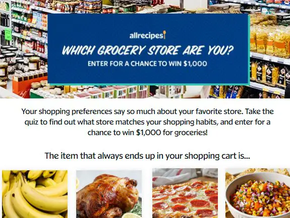 All Recipes Grocery Store Quiz Sweepstakes