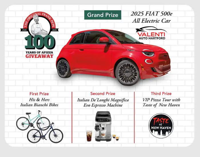 Frank Pepe’s 100 Year Anniversary Sweepstakes - Win $9,000 Cash, Car Lease & More - Frank Pepe