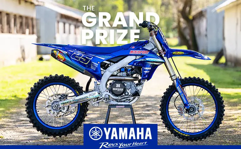 One grand prize winner will receive the 2025 Yamaha YZ450F and a massive bundle of gear and upgrades valued at $18,696.65.