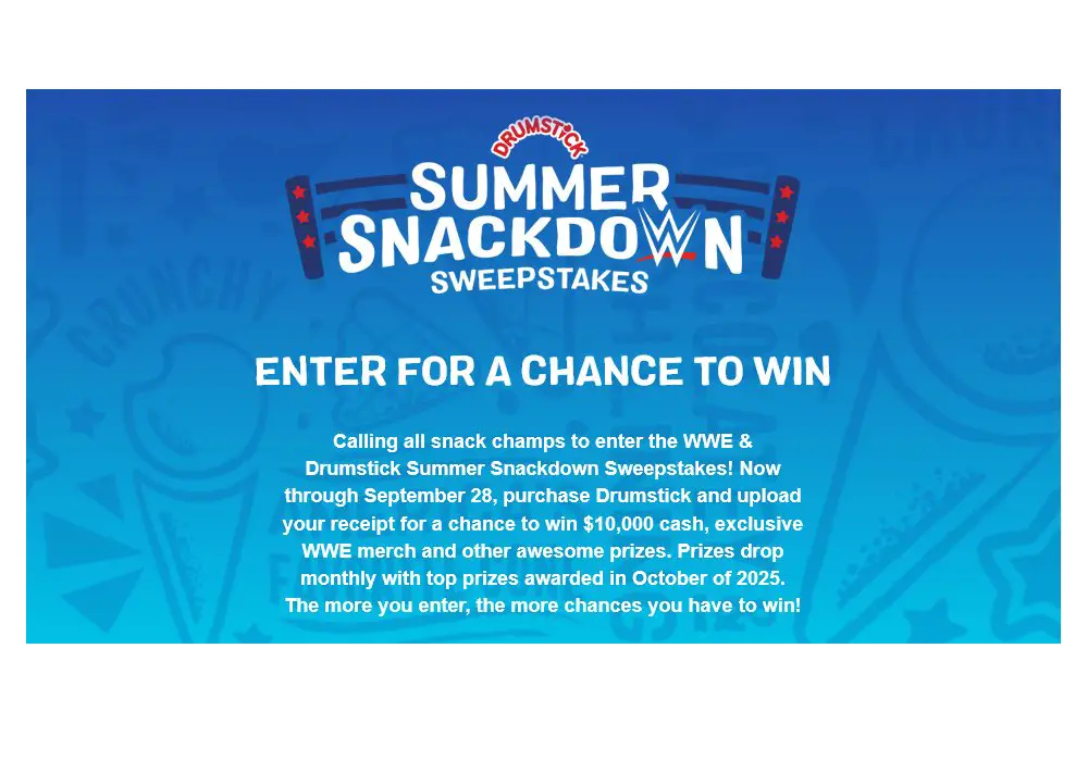 Drumstick WWE Summer Snackdown Sweepstakes - Win $10,000, WWE Merch & More - Drumstick