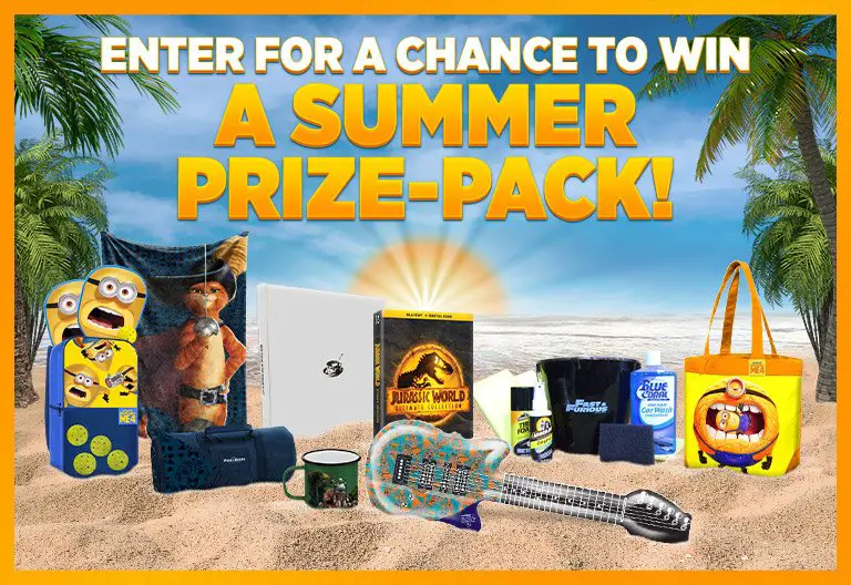 10 lucky winners will each score a themed prize pack valued at $200. Each prize pack consists of a Despicable Me 4 Pickleball Set, a Despicable Me 4 Beach Tote, the Wild Robot Camping Mug, Puss in Boots: The Last Wish Picnic Blanket, Get Out “Now You're in the Sunken Place” Book, and more.