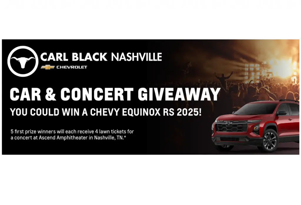 Awesome right? Carl Black Chevrolet will also select five winners of four lawn tickets to a Live Nation Concert at Ascend Amphitheater in Nashville, TN!