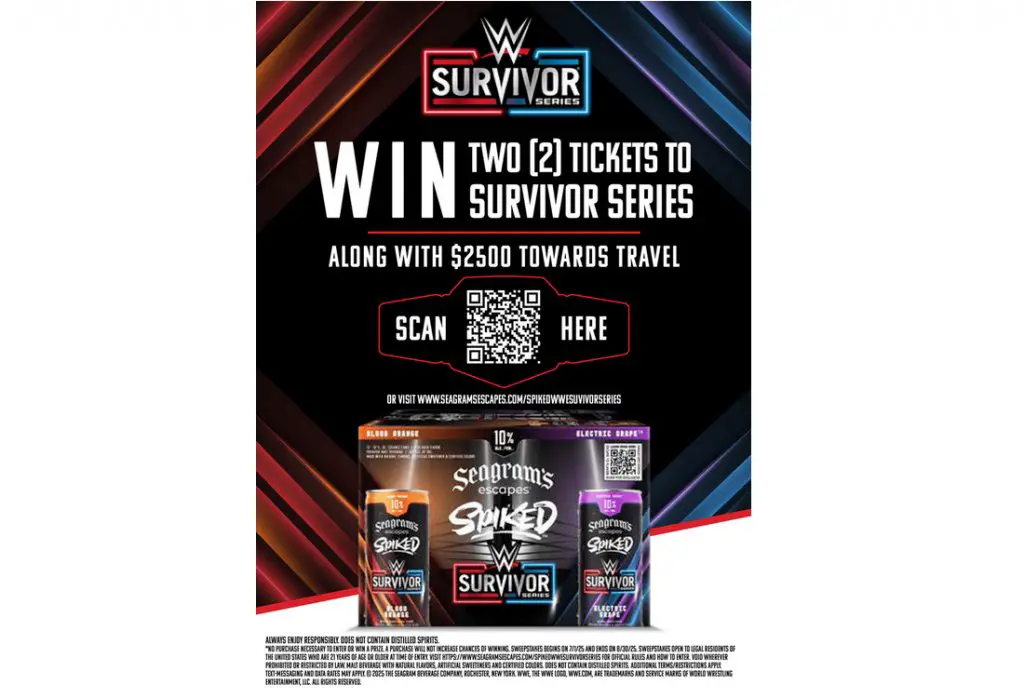 Seagram's Escapes Spiked + WWE Survivor Series Sweepstakes - Win Tickets To WWE Survivor Series & $2,500 (3 Winners) - Seagram's Escapes