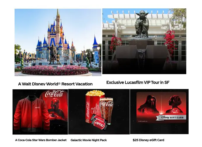 Enter the Coca‑Cola Galaxy Sweepstakes for a chance to win a trip for a Lucasfilm Experience or a Walt Disney World Resort Vacation package.