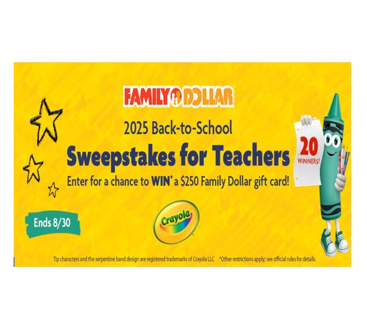 Enter the Family Dollar 2025 Back-to-School Sweepstakes for a chance to win a $250 Family Dollar gift card.