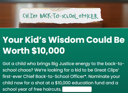 Enter the Great Clips Back-to-School Chief Officer Contest for a chance to win $10,000 cash towards your child’s education + Free haircuts for a year!