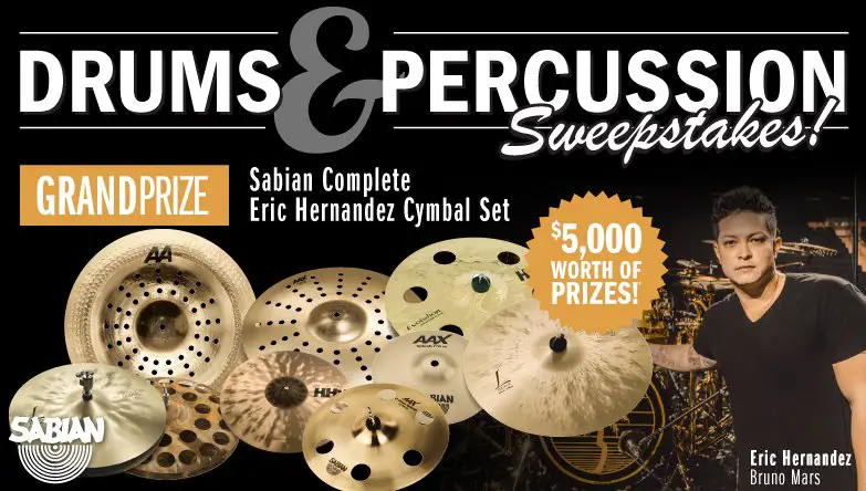 Enter your details to Win the Drum and Percussion Sweepstakes - Sabian Complete Eric Hernandez Cymbal Set!