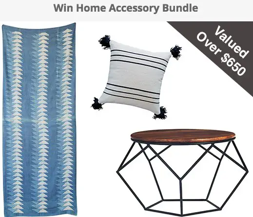 Win a Coffee Table, Wall Hanging and Throw Pillow worth $650.00. To enter simply sign up with your email and follow the sponsor on Instagram. You can increase your chances of winning by completing each task.