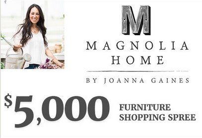 Win a Magnolia Home Furniture Shopping Spree worth $5,000.00. Limit one entry per person for the sweepstakes.