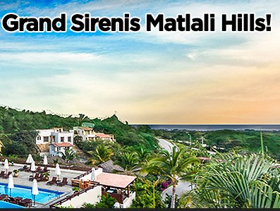 5 day/4 night All-Inclusive Vacation for 2 people to the Grand Sirenis Matlali Hills, in our Tropical View suite.Entry Form