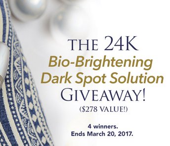24K Bio-Brightening Dark Spot Solution worth $278.00. To participate in the giveaway, click an entry option on the widget and follow the instructions, 7 ways to enter.
