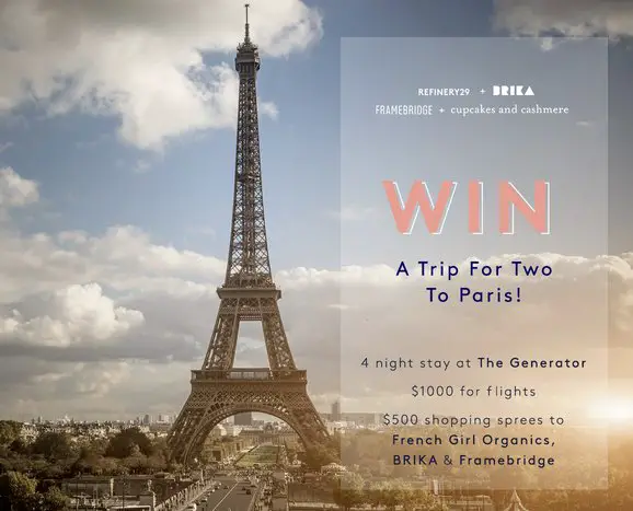 Win a $3,170.00 credit prize pack, comes with a $500 credit to frenchgirlorganics.com online only with no expiration, $500 credit to Framebridge.com online only with no expiration, $500 credit to brika.com online only with no expiration, $1,000 American Express gift card for flights, and a four night stay at The Generator hostel in Paris, France in a Premium Terrace Twin private room.