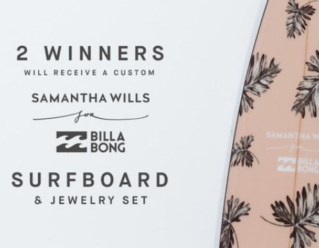 Win a limited edition Samantha Wills surfboard worth $895.00. Throw your email and name in the box and get up to speed on all things Billabong, and be entered to win.
