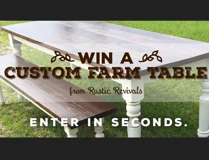 Score up to $500.00 towards a custom farm table from Rustic Retreats. Winner can select design up to $500 or pay difference for a larger table. Enter in seconds!