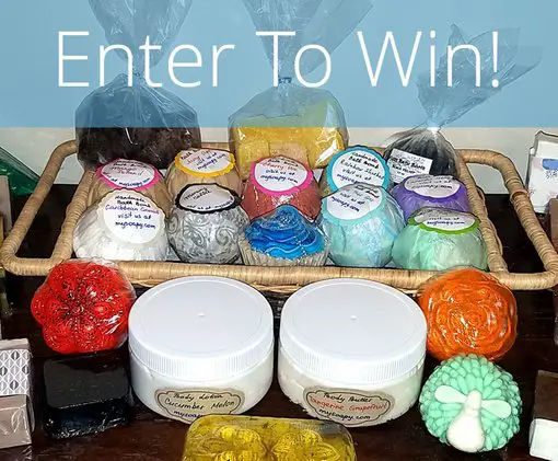 Enter to win a $200.00 incredible collection of Soapy's most popular hand-crafted bath products including: Bath Bombs, Cold-Processed Soaps, Custom Soaps, Lotion, Body Butter, Bubble Bars and Scrubs. Set includes 30 pieces.