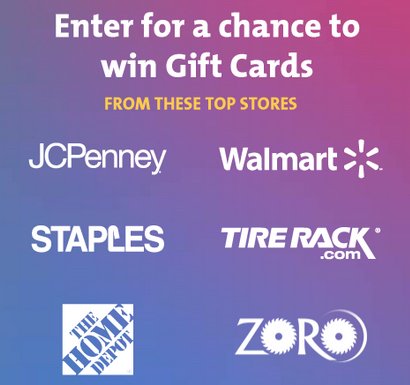 Win your part of hundreds of gift cards worth $4,770.00. Play the game for a chance to instantly win a valuable gift card from Speedway, JCPenney, Tire Rack and more.